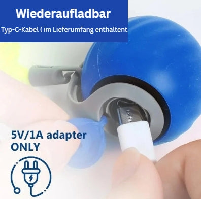 Die Kugel wird an der Seite mit einem Ladekabel aufgeladen. Beim anmachen der Kugel leuchtet ein Licht auf. Ist dieses Grün, ist der normale Modus Aktiviert. Leuchtet es Blau, ist der intelligente Modus aktiviert.
